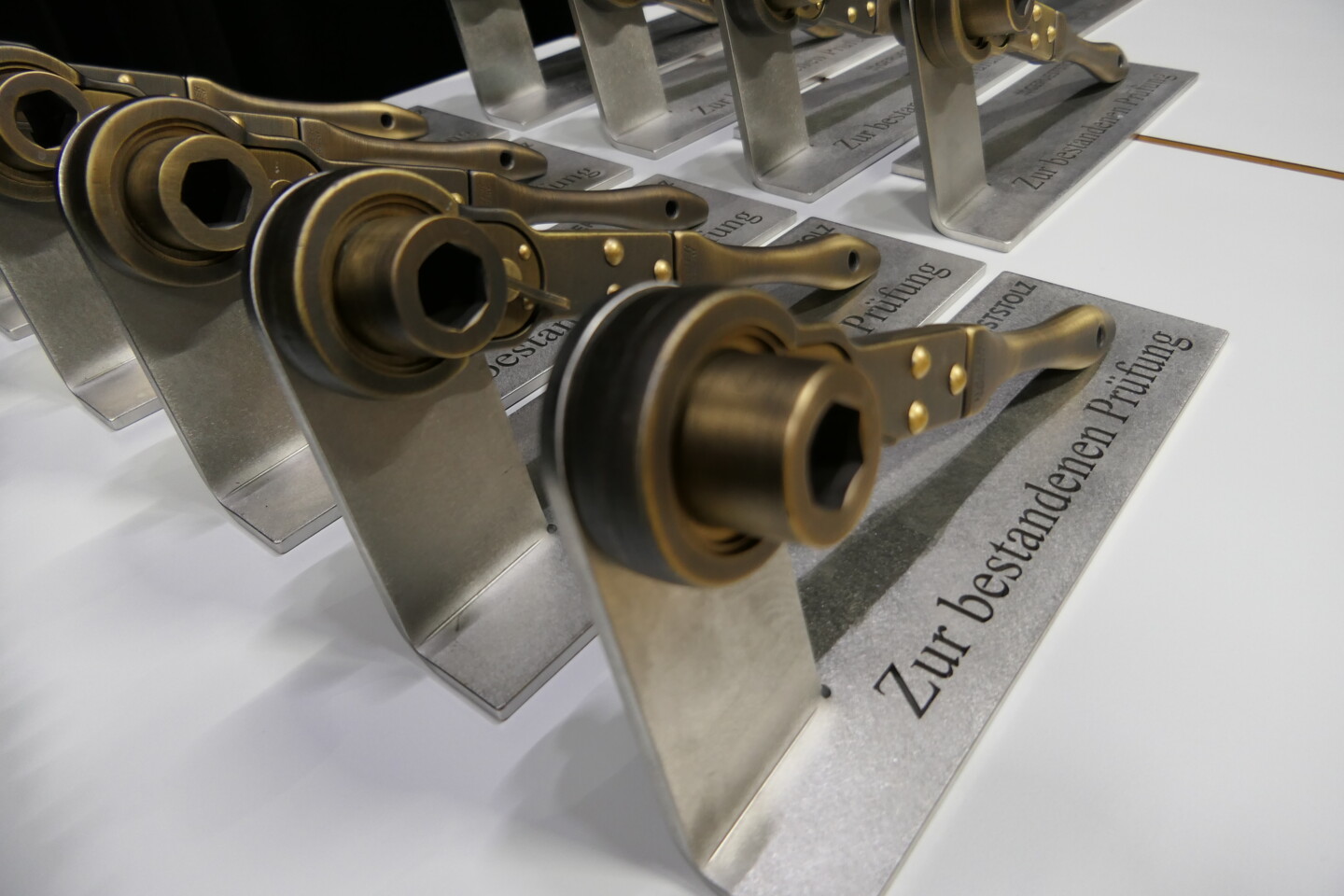 Nos diplômés en échafaudage étaient au cœur de l'événement et ont reçu un souvenir #gerueststolz des mains de Mathias Baumgartner, membre du Comité de Direction de la SESE.